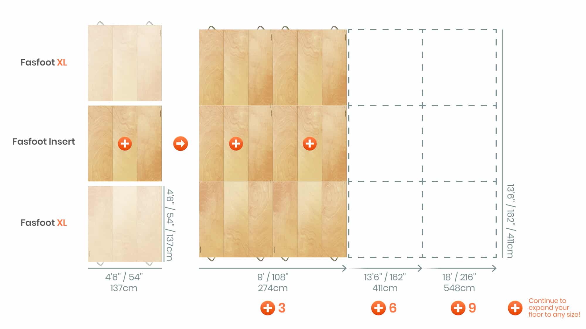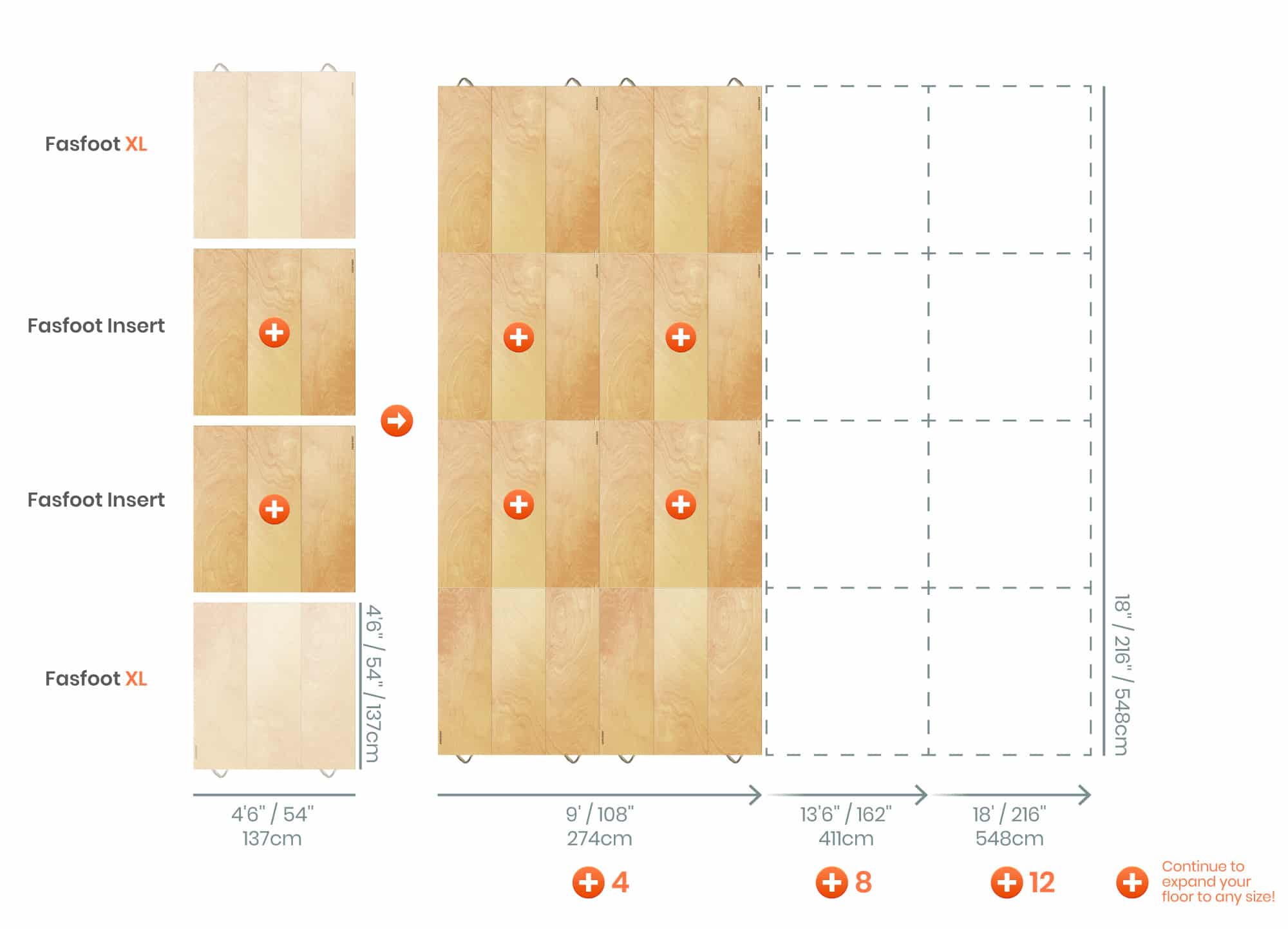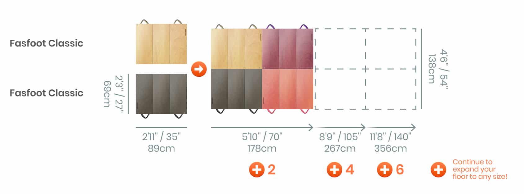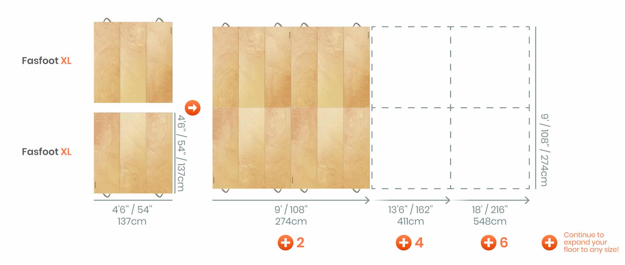 All FASFOOT floors are specifically sized to pair together to create the dance area you need. When you’re finished, simply fold them up for easy transportation or storage.